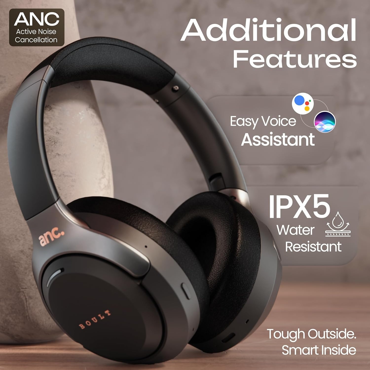 Boult Newly Launched Anchor Bluetooth Wireless Over Ear Headphones with Mic, Active Noise Cancellation, 72H Playtime, AUX Option, Type-C Fast Charging, 40mm Bass Drivers, IPX5, Gaming ANC Headphones.